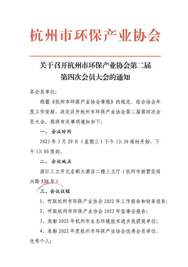 协会通知|关于召开杭州市环保产业协会第二届第四次会员大会的通知